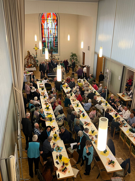 Besondere Aufmerksamkeit fanden die Vorträge über den Schulgarten der Staatlichen Förderschule Sprache – Weierwiesschule, die eindrucksvoll zeigten, wie Kinder durch Naturerfahrungen lernen und Verantwortung übernehmen. Ein weiterer Höhepunkt war die Segnung der Erntegaben – Obst, Gemüse und Kräuter aus Neuweiler Gärten sowie die Backwaren, die freundlicherweise von der Backstube Martins Bäckerei gespendet wurden. Pastor Sens von der Katholischen Kirche nahm die Segnung vor und verlieh der Feier damit eine besonders feierliche Note. Darüber hinaus ehrte der Verein seine Geburtstagsjubilare und gratulierte Mitgliedern zu ihren 80., 85., 90. und 95. Geburtstagen.