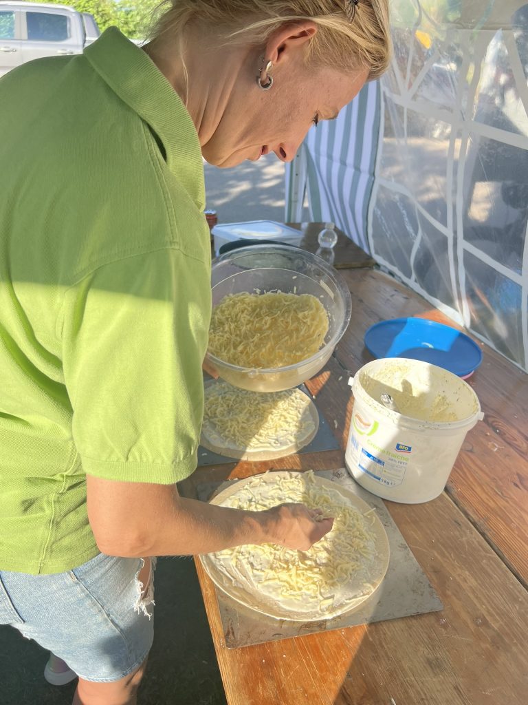 Besonders beliebt waren die frisch gebackenen Flammkuchen, die in drei köstlichen Varianten – Elsässer Art, vegetarisch und Münster Art – angeboten wurden. Insgesamt wurden stolze 171 Flammkuchen verkauft – ein echter Beweis für den guten Geschmack und die gesellige Atmosphäre.